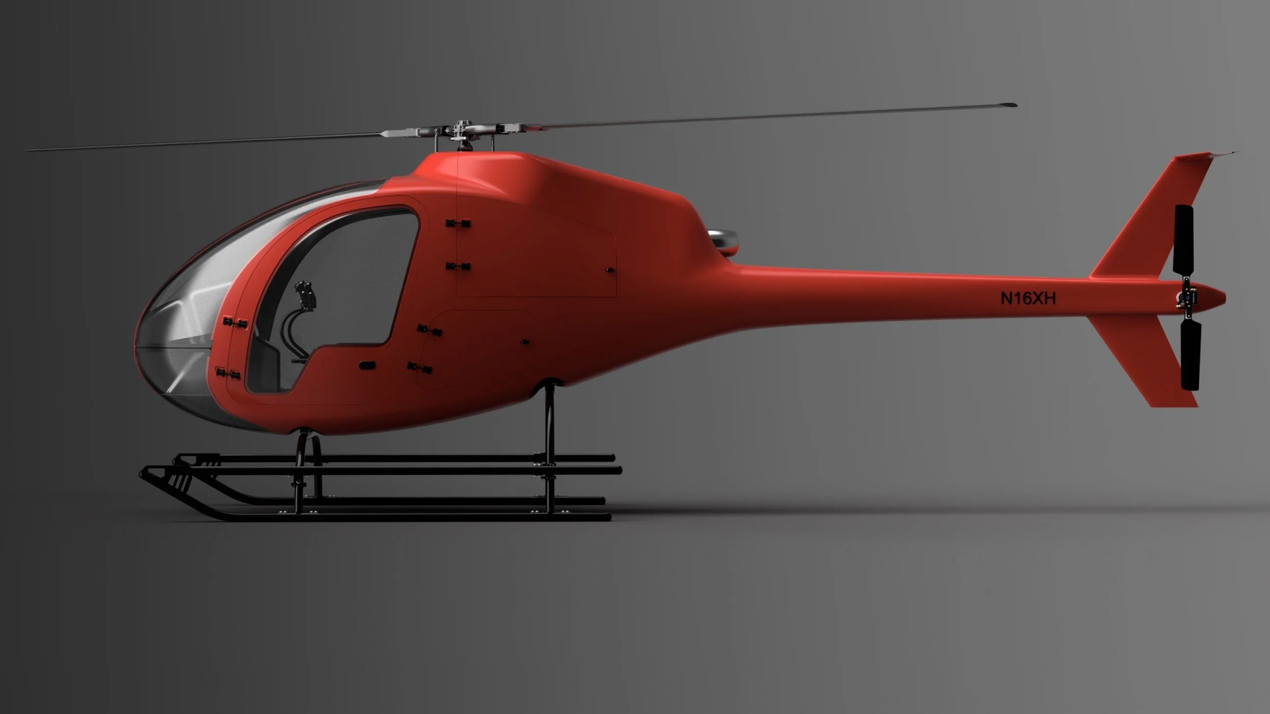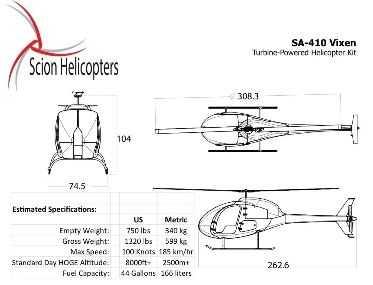 The Vixen is a turbine-powered, high-performance, sleek two-seat helicopter. The carbon-composite airframe keeps weight low and stiffness high for efficient aerodynamics and precise handling.